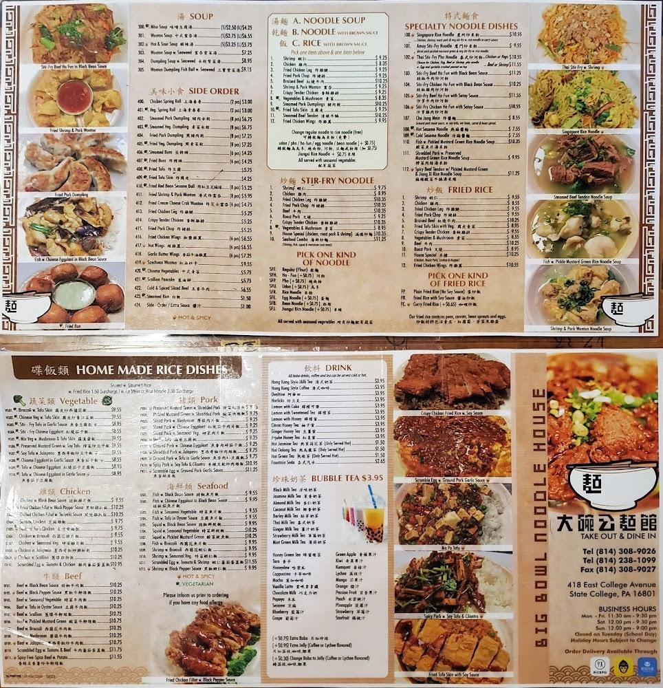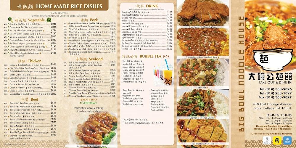 The menu at Big Bowl Noodle House is extensive, offering a delightful mix of traditional Chinese dishes. Rice noodles take center stage, with options like beef noodle soup and Singapore noodles.