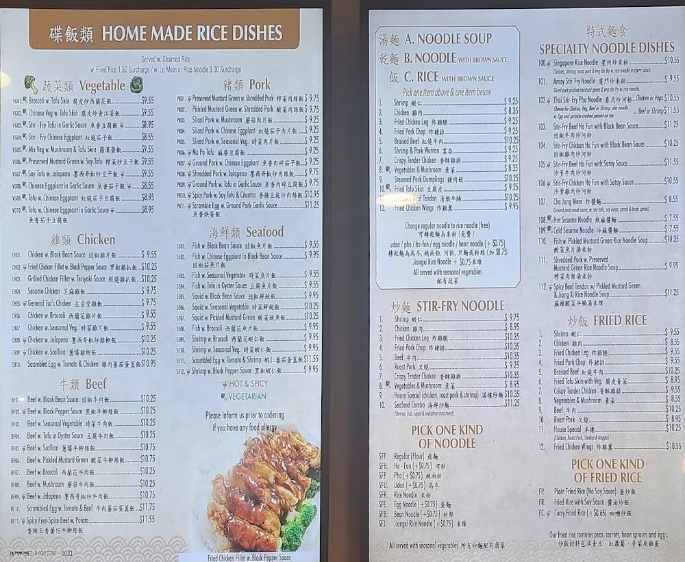 Dumplings, fried rice, and various congee options round out the offerings. The diverse menu caters to both meat lovers and vegetarians, ensuring everyone finds something they enjoy.